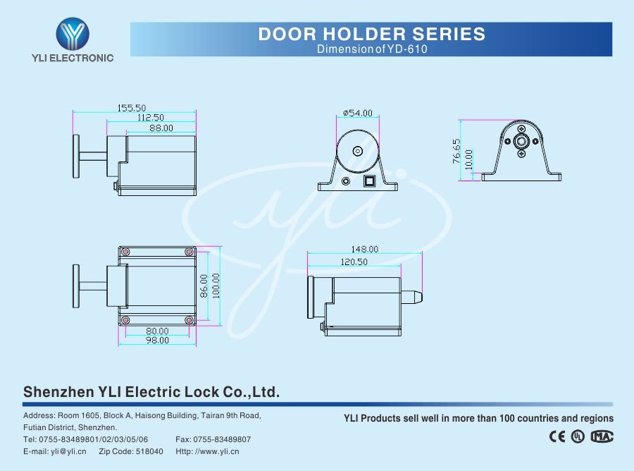 Новый тип электромагнитного устройства, электромагнитная часть сочетается с пластиной якоря. Интеграция структуры и функции. Отказоустойчивость. Встроенный болт, светодиод и кнопка спуска. Функция двунаправленного напряжения. Описание технических характеристик, комплексная конструкция, ее характеристики: Литье под давлением, цельная конструкция; Описание технических характеристик, встроенный болт, его характеристика: принцип действия пружины, болт работает как соединение с пластиной якоря; Описание технических характеристик, функция двунаправленного напряжения, характеристика: 12 В постоянного тока / 24 В постоянного тока опционально.